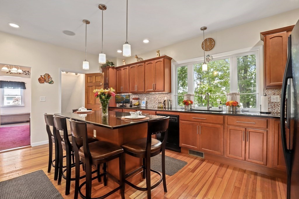 Beautiful 3BR Colonial perched on a hill in the Maplewood Highlands of Malden. This home sits high on a sloped wooded lot at the end of a quiet dead end street w/ plenty of privacy & curb appeal, close to Salemwood Elementary School. 1st floor has bright open layout that flows into modern eat-in kitchen w/ island bar, granite counters & custom cabinetry. Spacious living room w/ cozy fireplace opens to elegant formal dining room. A half bath completes the 1st floor. 2nd floor features three carpeted bedrooms w/ carved wooden moldings & recently updated full bath. Large walk-out basement offers direct front & back access w/ plenty of storage options, including ample workshop space. Elevated deck off living room overlooks large backyard w/ mature landscaping. Watch the Boston Skyline light up & enjoy magnificent sunrises from the comfort of your own home each fall & winter w/ seasonal views of the city & hills beyond. Close to highways, Boston, airport & casino. MLS# 72735526.
