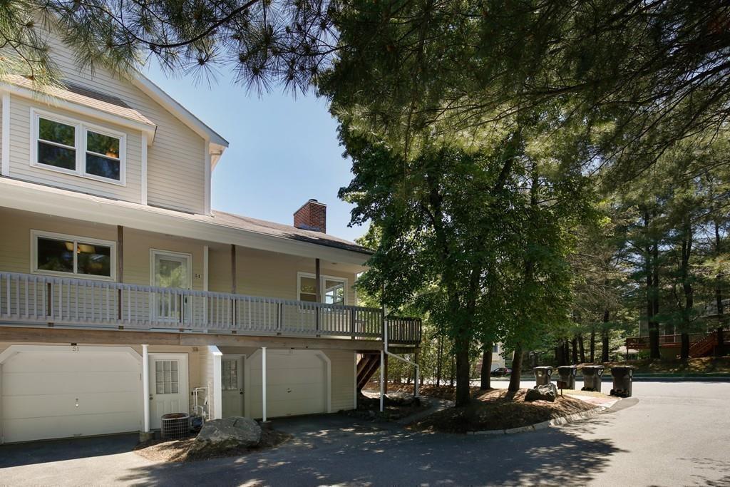 Lofty, bright, and spacious 1BR corner townhouse on a wooded lot in the highly-desirable Hamlet Condominiums. This two-level living space feels like a hidden retreat. Natural light fills the condo from every corner with large open floorplan and soaring cathedral ceilings. Separate dining area opens to living room with woodburning fireplace and bonus half bath. The eat-in kitchen with updated appliances is ready for your ideas! Big bedroom upstairs has lots of storage space and ensuite bath. New carpeting throughout and renovated bathrooms. Enjoy your morning coffee on the oversized private deck with private entrance. Attached 1-car garage on lower level with driveway space for tandem parking and additional street parking nearby. Also includes utility room with brand new washer/dryer and hot water heater. Close to everything and you can still run errands during Halloween mania with super easy access to shops via Traders Wy instead of Highland Av. Move right in and enjoy the convenience of this fantastic unit! MLS# 72676075.